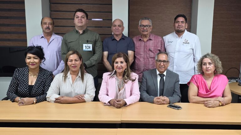 Culiacán, Sin.- La alcaldesa Evangelina Llanes Carreón, H. Cuerpo de Regidores, secretario del ayuntamiento y tesorero municipal sostuvieron una reunión con el presidente de la