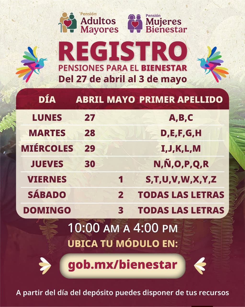 Los Mochis, Sin.- La secretaría del Bienestar abrió a partir de hoy el registro a las pensiones del Bienestar para mujeres que al 30 de abril cumplan los 60 años de edad, y también para adultos mayores 65 y más.