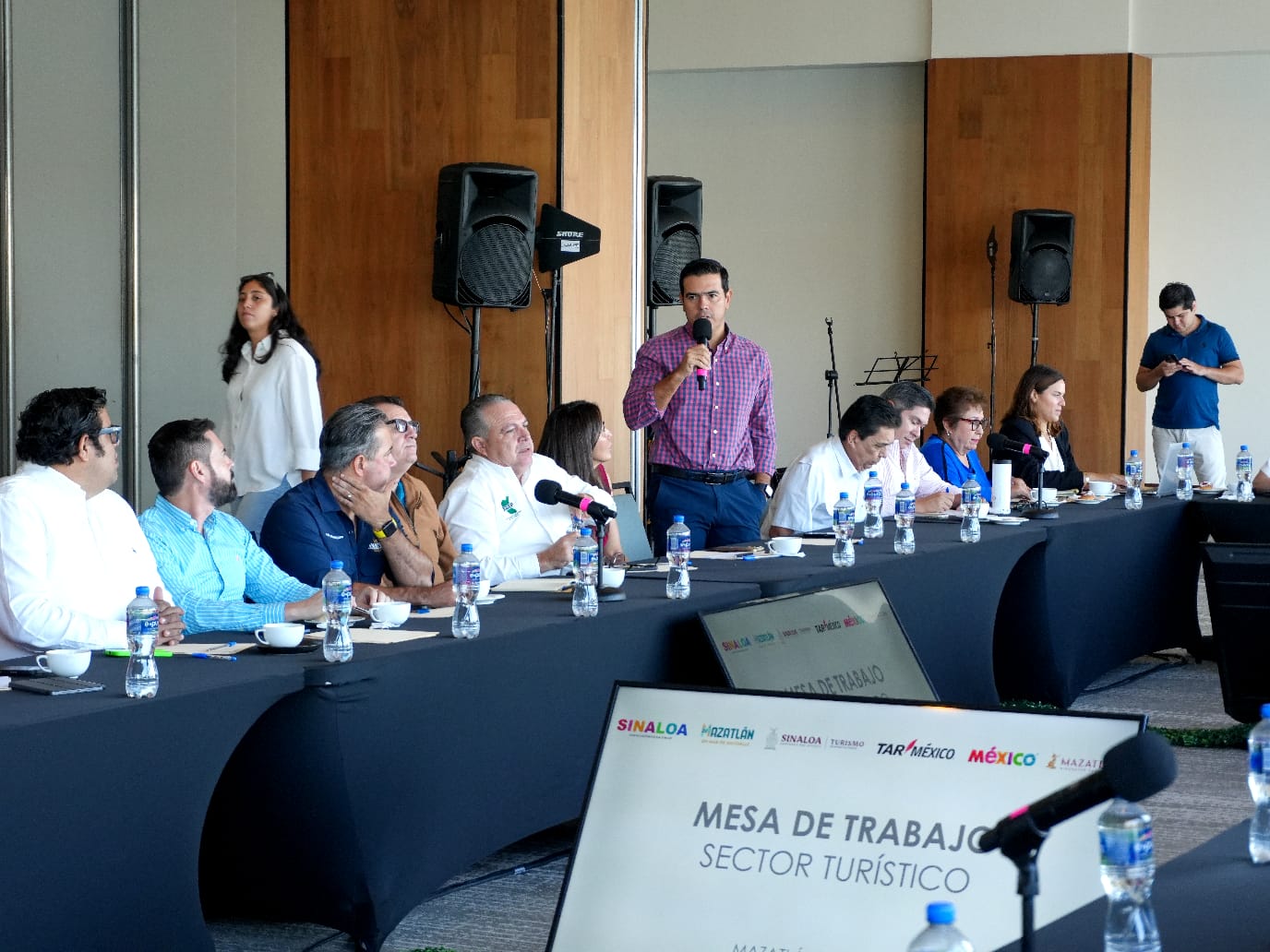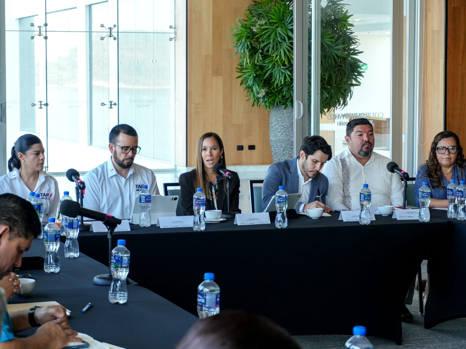 Junto a la funcionaria estatal, encabezaron la reunión Ángel García, director comercial de la aerolínea TAR; Abelardo Muñoz, director de Desarrollo de Tráfico de OMA; Alí Zamudio, secretario de Desarrollo Económico, Turismo y Pesca de Mazatlán; Zelmy Lazcano, gerente de ventas de TAR; Edna Gutiérrez, directora de marketing y promoción de la Asociación de Hoteles y Empresas Turísticas de Mazatlán y José Ramón Manguart, presidente de la Asociación de Hoteles 3 Islas de Mazatlán.