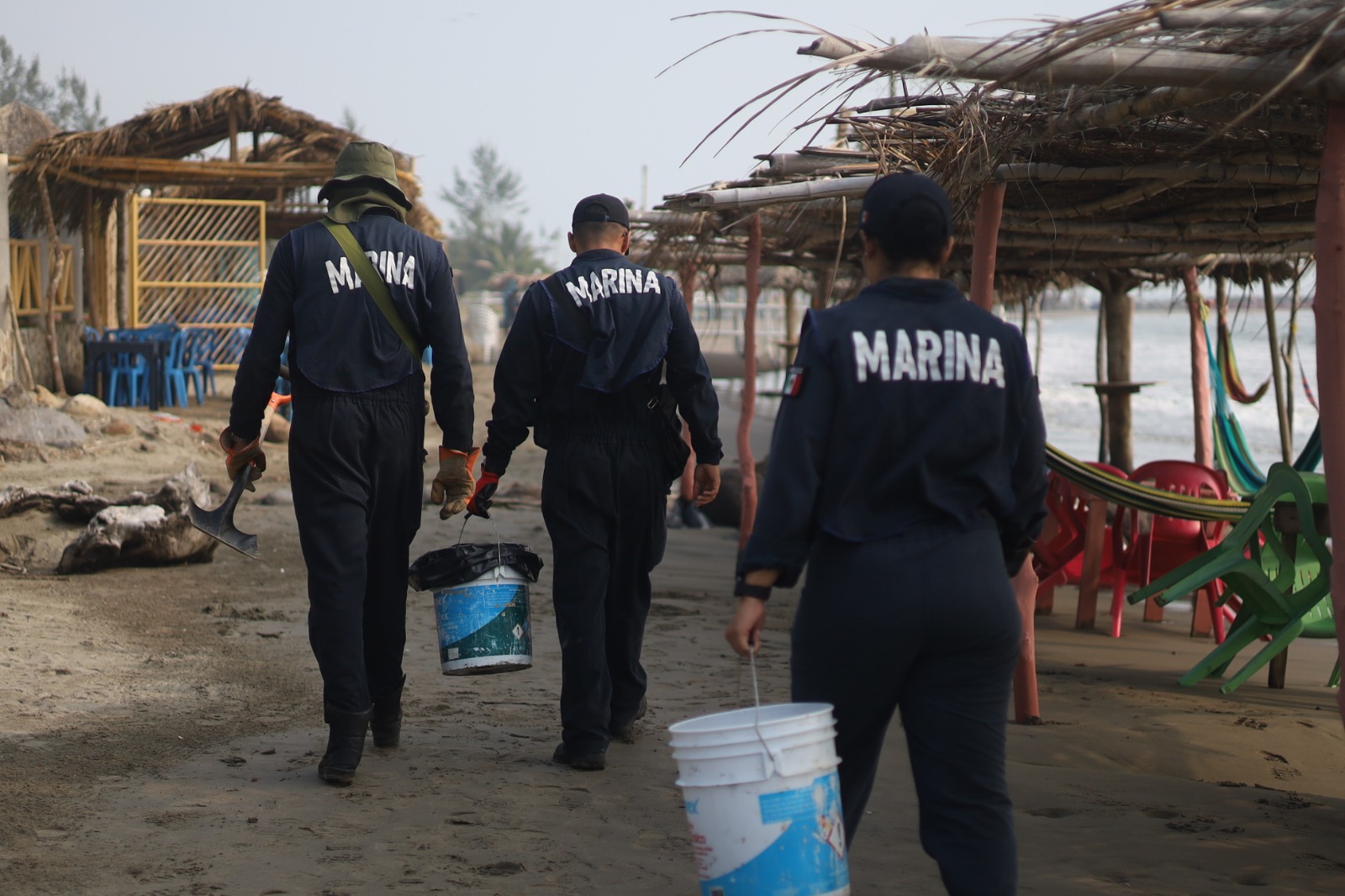 De manera complementaria, se mantienen recorridos en distintas zonas, incluyendo la franja fronteriza de Tamaulipas, donde se han atendido aproximadamente 15 kilómetros de litoral, así como labores de inspección en embarcaciones en zonas como el fondeadero de Coatzacoalcos para evitar posibles vertimientos.