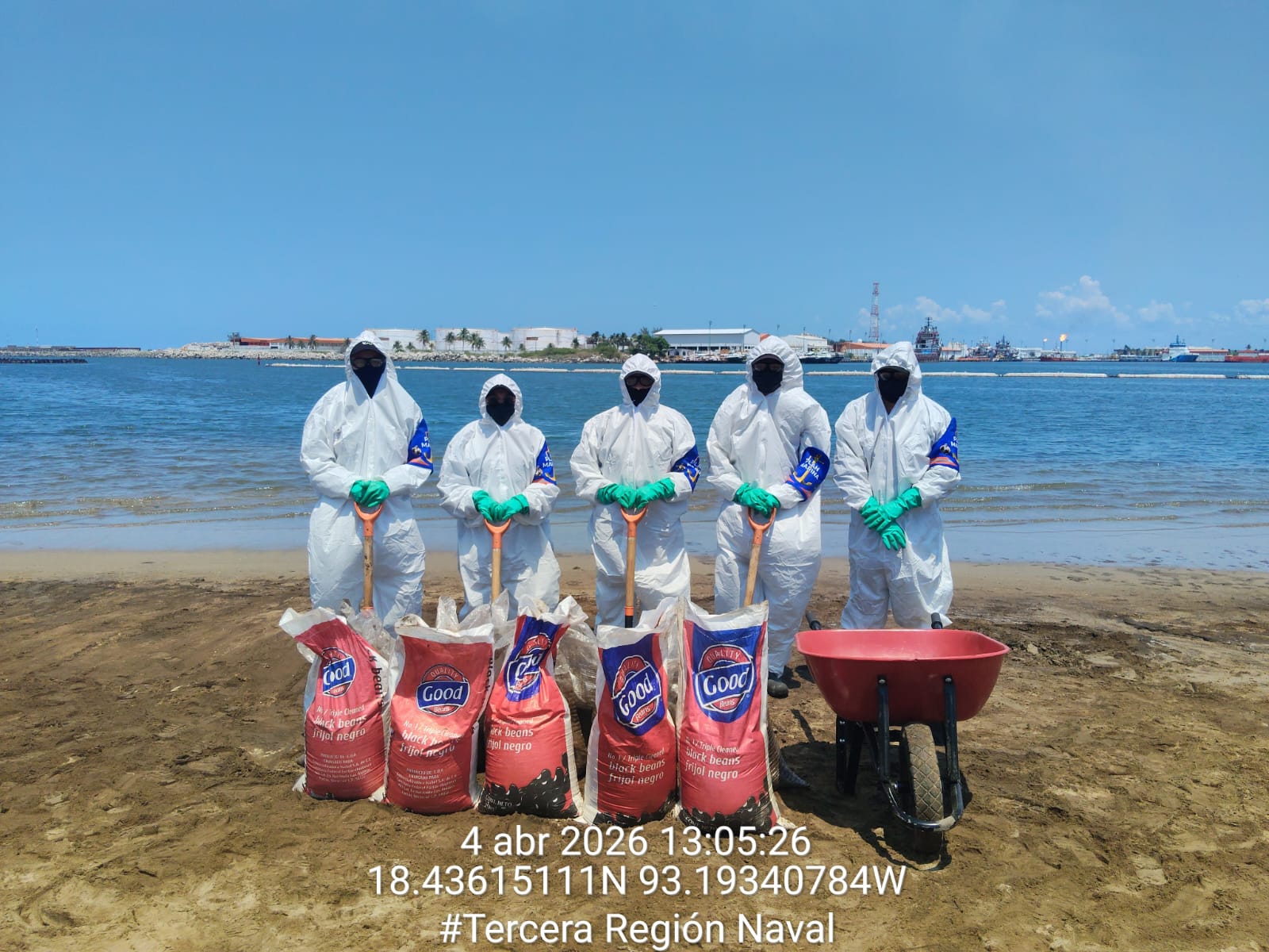 Asimismo, en las playas de Pajapan, Veracruz, personal de la Profepa reportó el 2 de abril actividades de limpieza de hidrocarburos, se mantiene monitoreo permanente ante posibles nuevos arribos.