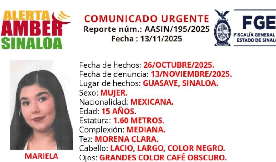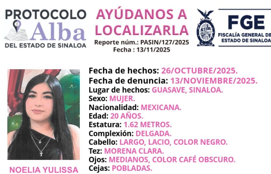 Guasave, Sin.- La Fiscalía General del Estado activó dos Alertas Alba y una Alerta Amber para buscar a una madre y sus dos hijas, una de ellas menor de edad, quienes fueron reportadas como desaparecidas en la localidad de El Tajito, en Guasave.