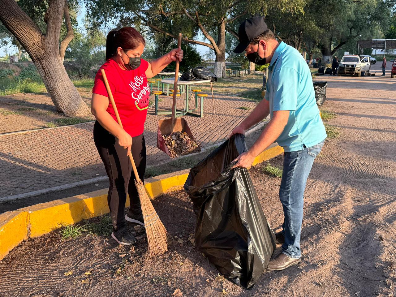 Guamúchil, Sin.- Con el firme compromiso de mantener un municipio limpio, ordenado y con espacios dignos para las familias, el presidente del H. Ayuntamiento de Angostura, Alberto “El Capy” Rivera, encabezó una intensa jornada extrema de limpieza en la Alameda del Río.