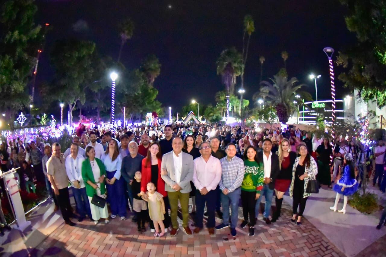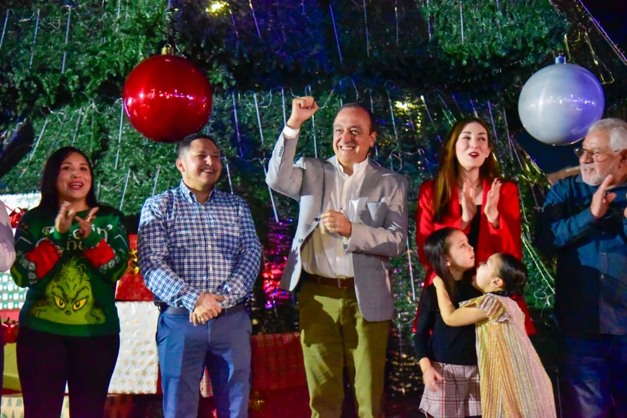 Los Mochis, Sin.- El Gobierno de Ahome celebró el tradicional encendido del Pino Navideño, que este año fue instalado en la Casa del Centenario y que, con sus 20 metros de altura, se convirtió en un nuevo punto de encuentro para miles de familias.