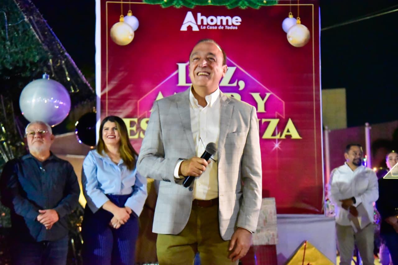 “Este pino tiene un acabado especial, un trabajo dedicado hecho por manos ahomenses. El Ayuntamiento tiene la responsabilidad de embellecer la ciudad y de mantener viva la magia de la temporada. Además, estas instalaciones se replicarán en todas las sindicaturas para que el ambiente navideño llegue a cada comunidad”, señaló.