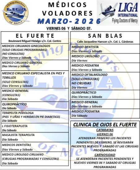 Los Mochis, Sin.- Los Médicos Voladores estarán este viernes y sábado próximos en San Blas y en El Fuerte.