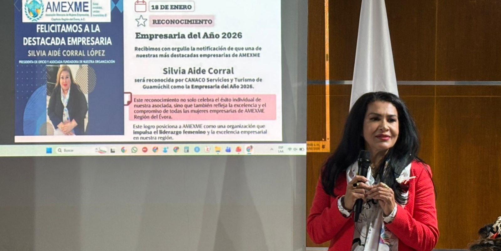 Reconoció el liderazgo de Silvia Aidé Corral López, que fue reconocida como Empresaria del año y actualmente es candidata a la presidencia de la Cámara Nacional de Comercio, Servicios y Turismo del Évora, una mujer que busca dar fortalecer el desarrollo económico desde varias trincheras.