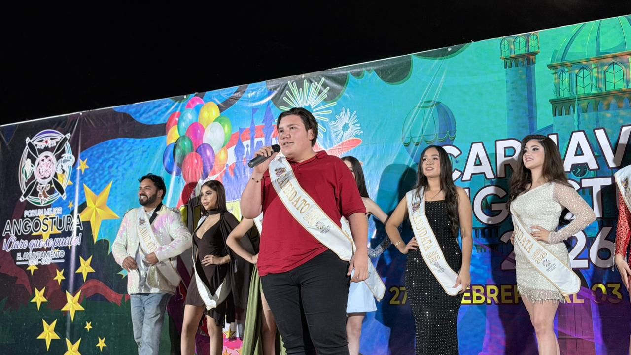 De igual manera, se presentaron oficialmente los candidatos a Rey de la Alegría del Carnaval Angostura 2026: