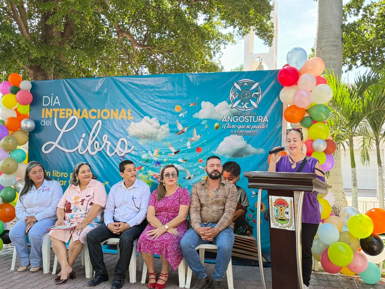 Angostura, Sin.- En el marco de la conmemoración del Día Internacional del Libro, el municipio de Angostura celebró con gran entusiasmo una demostración de libros en la plazuela municipal, evento que reunió a autoridades, estudiantes y ciudadanía en general para fomentar el hábito de la lectura y el acceso a la cultura.