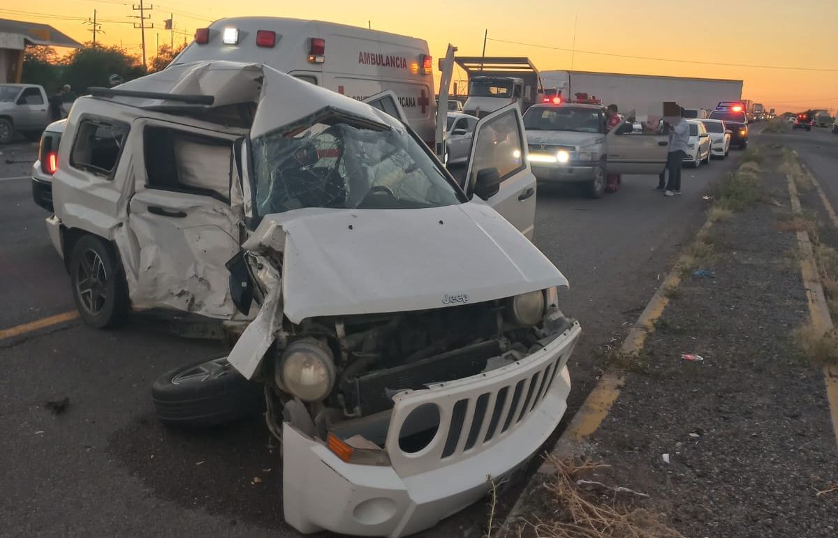 Guasave, Sin.- Un fuerte choque tipo carambola con salida de camino dejó como resultado dos personas lesionadas, la tarde de este miércoles sobre la carretera Internacional México-15 en Guasave.