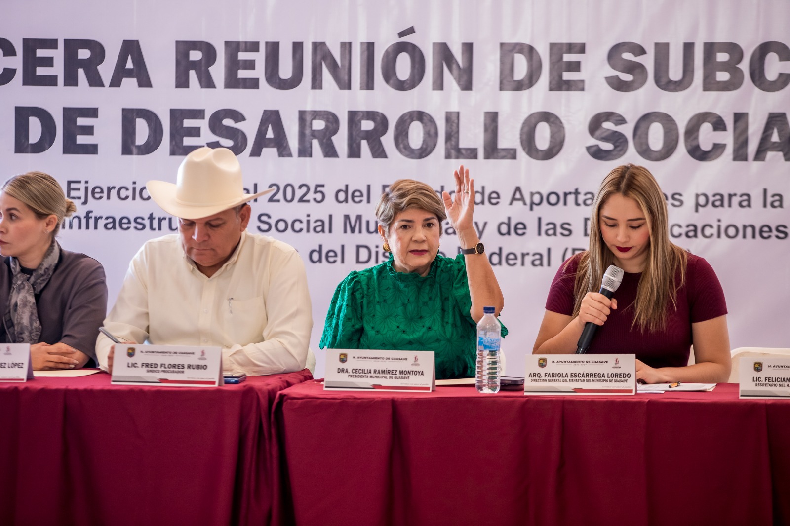 La presidenta municipal Cecilia Ramírez Montoya encabezó esta reunión junto con la directora general de Bienestar, Fabiola Escárrega Loredo, el síndico procurador Fred Flores Rubio, la tesorera municipal María Fernanda Rodríguez López, regidores de la Comisión de Obras, síndicos municipales; el director general de Obras, Rael Rivera, y funcionarios de JUMAPAG, Educación, Órgano Interno de Control y gobierno del estado, a través de SEBIDES.