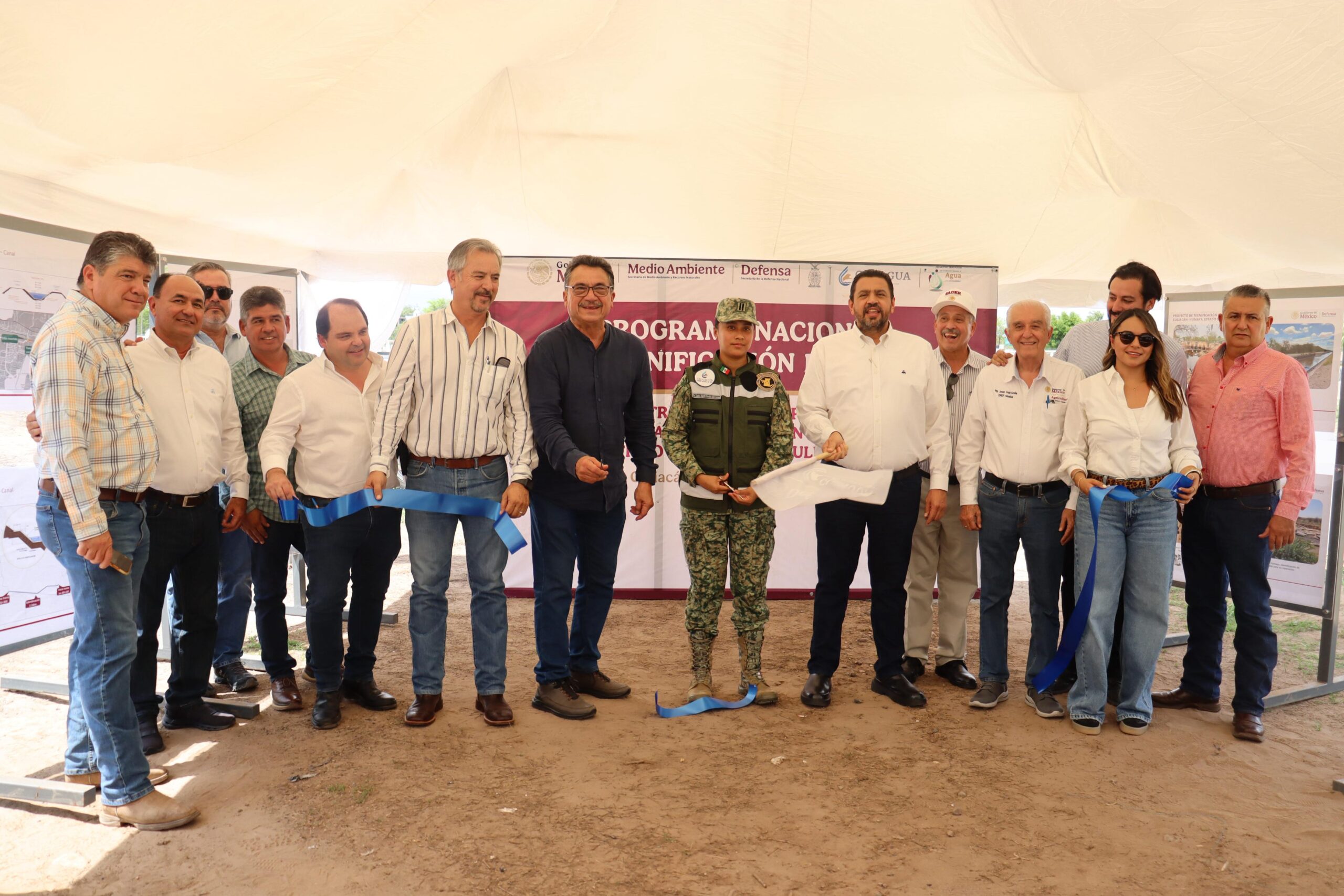 Acompañados también de representantes de la SADER, SEDENA, CAADES, módulos de riego y productores agrícolas del centro de la entidad, dieron el banderazo inicial en el canal principal Rosales, en donde se contempla la construcción con revestimiento de concreto hidráulico en una longitud inicial de 4.05 kilómetros.