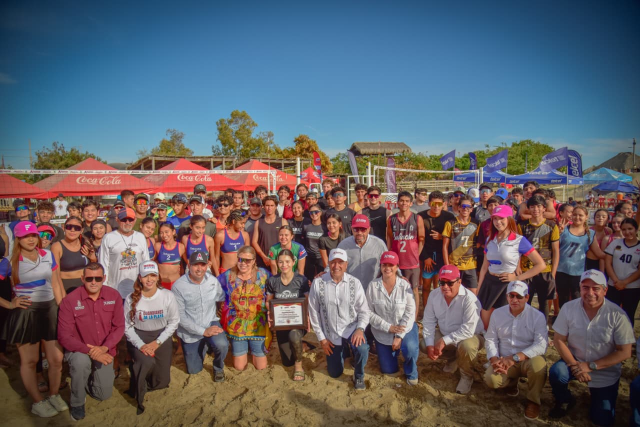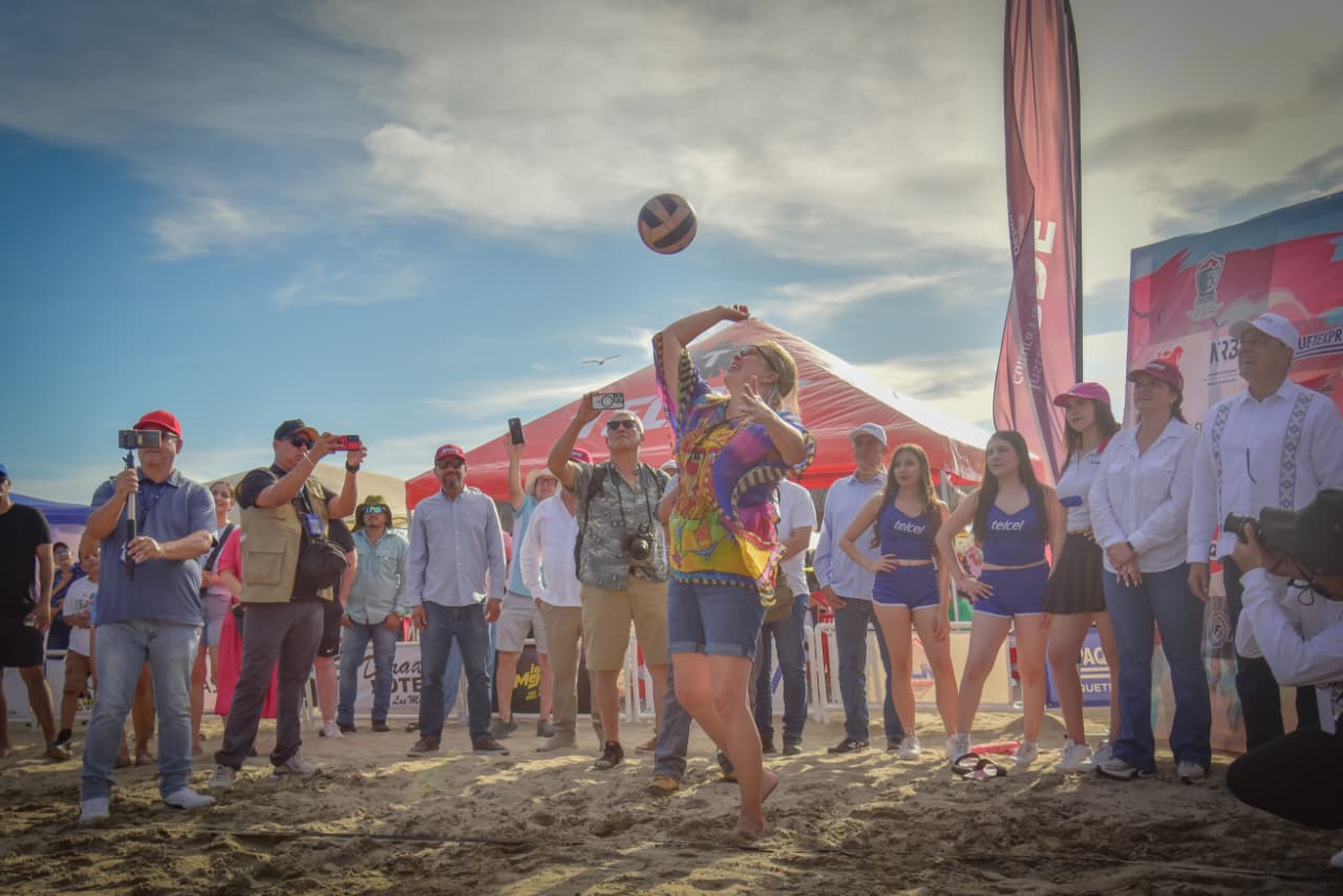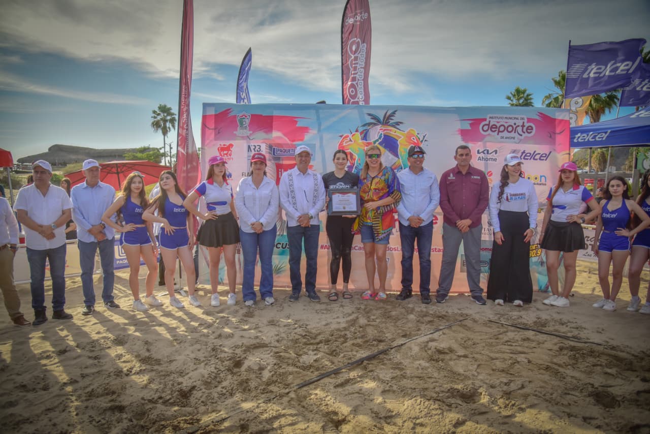 Playa El Maviri, Ahome, Sin.- En un ambiente de entusiasmo, competencia y reconocimiento al talento deportivo, el Ayuntamiento de Ahome, a través del Instituto Municipal del Deporte, inauguró el Torneo de Voleibol Playero “Tormenta en la Arena Ahome 2026” en, donde además se rindió homenaje a Diana Gabriela Valdez Lizárraga, la “Kiki”, por su brillante trayectoria dentro de esta disciplina.