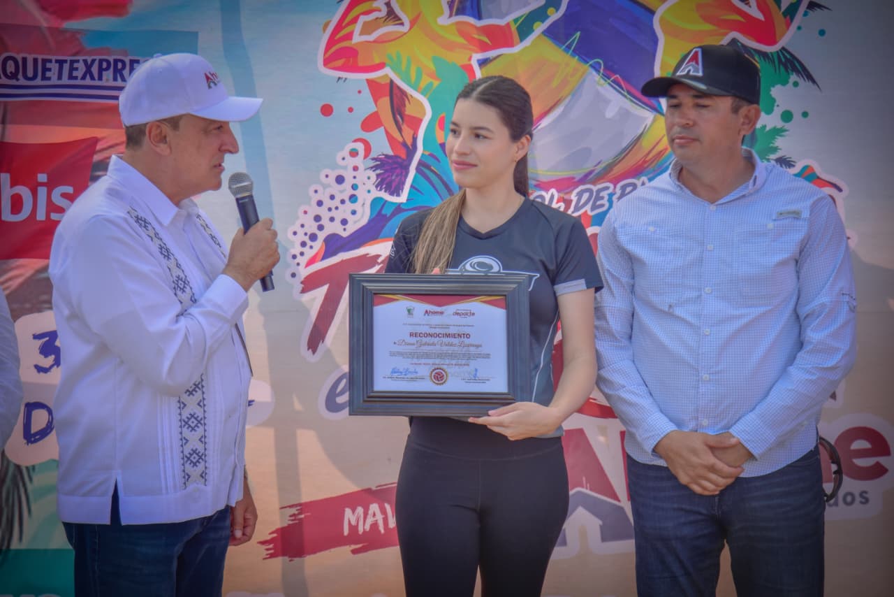 “Muchas felicidades por este gran y merecido reconocimiento a tu trayectoria; sabemos que todavía hay mucho más que le vas a dar a Sinaloa, a Ahome y a México. Y estoy seguro también de que muchas y muchos de ustedes pondrán en alto el nombre de su estado, de su país y del deporte”, expresó el Alcalde.
