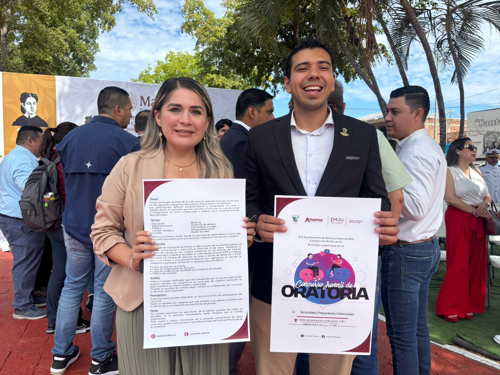 ‘’Al convocar a nuestras y nuestros jóvenes de 12 a 29 años a que se inscriban a este concurso de oratoria, un concurso que nos va a permitir escuchar temas de relevancia social de nuestro municipio, nos gustaría escuchar su punta de vista, su opinión sobre la inclusión, la diversidad, tema de violencia, prevención de violencia, está abierta la convocatoria para ello’’.