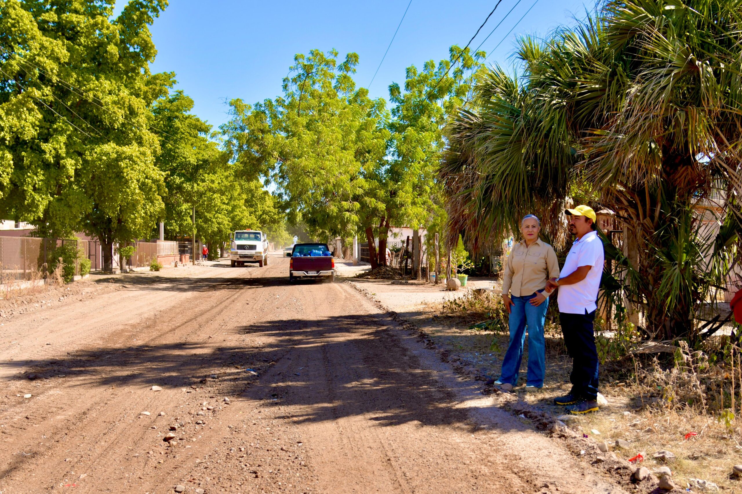 Dentro de la ciudad de Guamúchil, anunció que ya se concluyeron los trabajos en las colonias Maquío Clouthier y Pedro Infante, mientras que actualmente la maquinaria opera en la colonia Solidaridad, cumpliendo con el compromiso de atender colonias y comunidades en su totalidad.