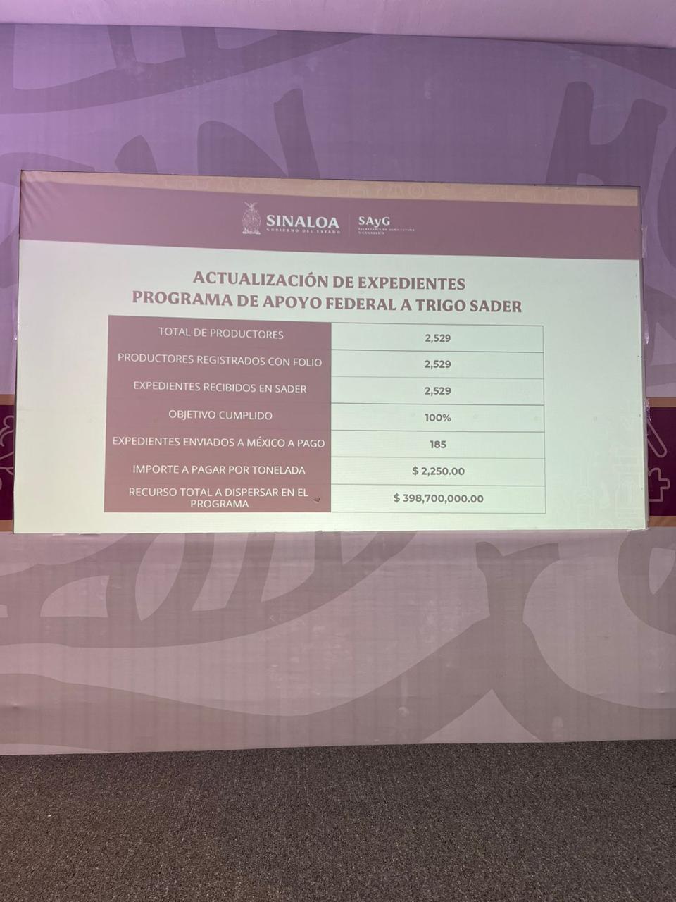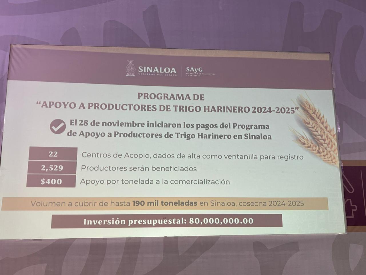 “Para el Gobierno del Estado para que reciban este apoyo de 400 pesos por tonelada todos los productores de trigo del estado, tenemos un avance en este momento ya de 1584 productores que son 105 mil toneladas y ya va dispersado por parte del gobierno del Estado de 42 millones de pesos, es importante comentar que el gobernador dio la instrucción de que antes del mes de diciembre se empezara a pagar y así fue y si no se ha terminado de pagar es porque hizo gestión para el pago del complemento y los productores estaban con ese registro ya que se vencía el 31 de diciembre de 2025”, detalló.