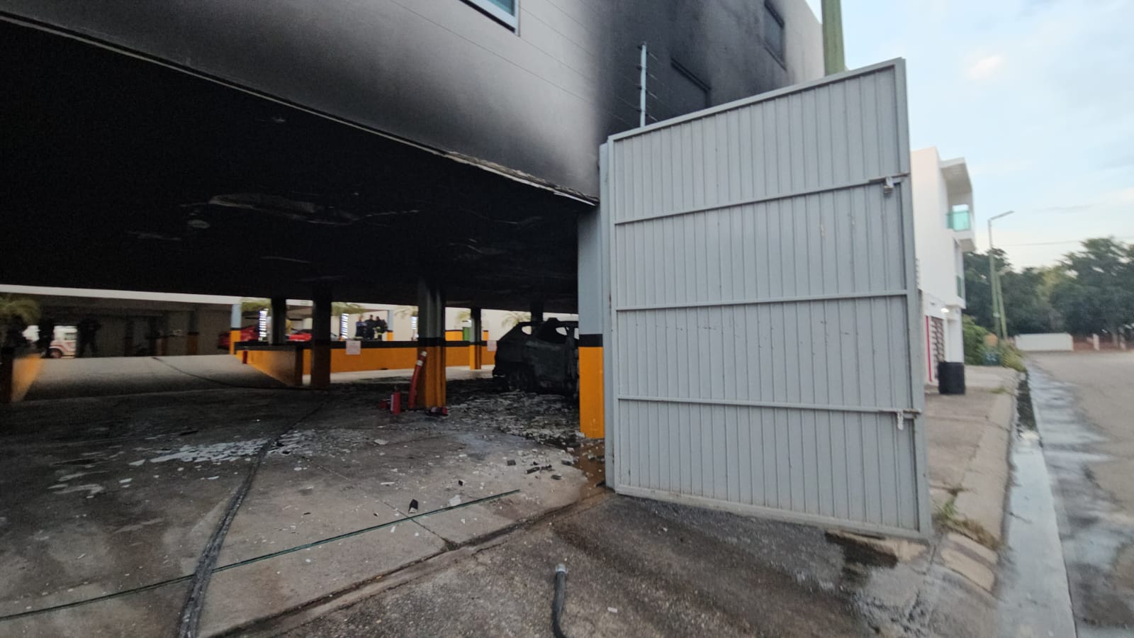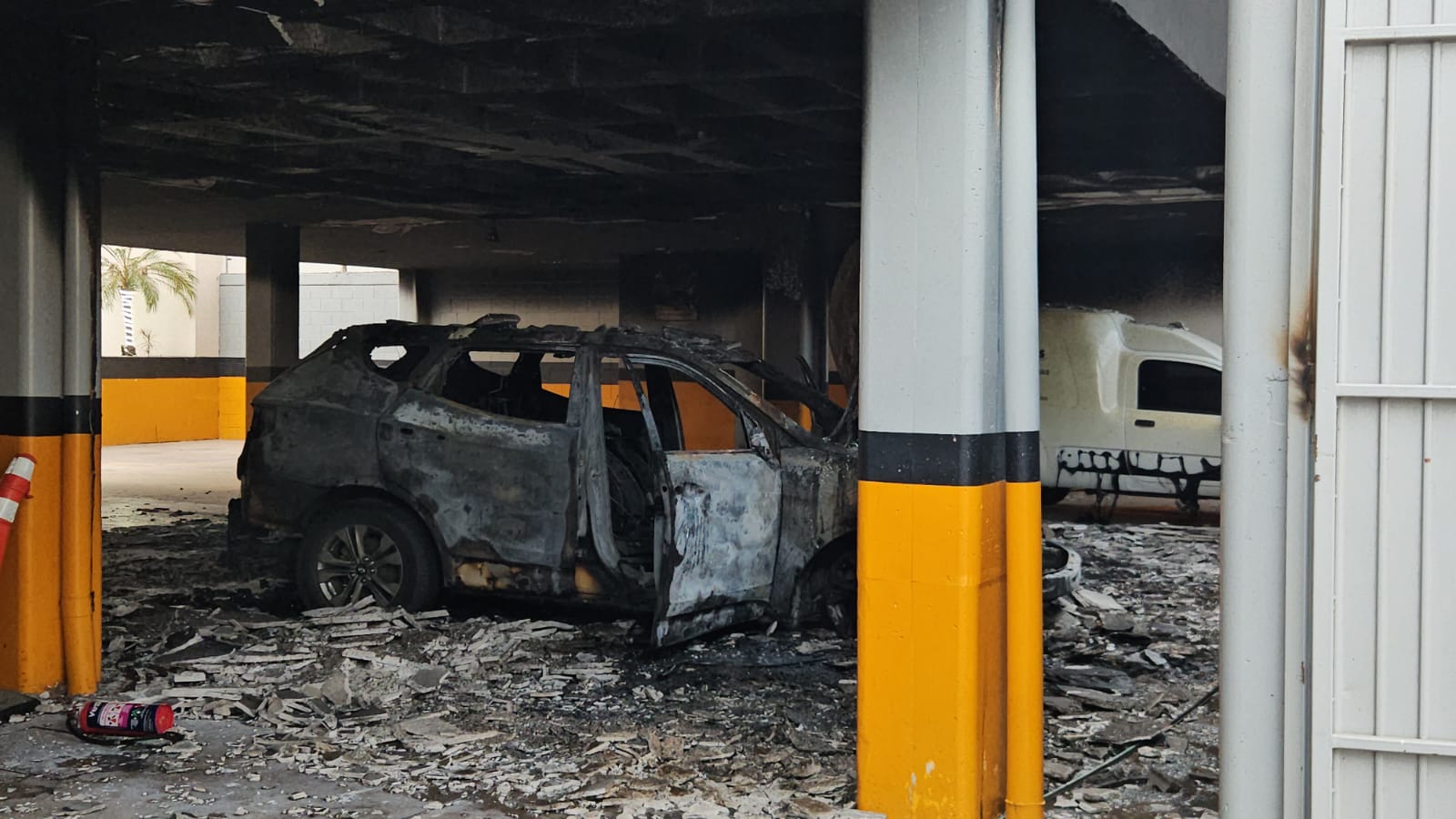 El calor generado por el incendio afectó también a una camioneta blanca de utilería, propiedad del hotel, que se encontraba estacionada a pocos metros del vehículo siniestrado. Además, se reportaron daños materiales en la infraestructura del inmueble, incluyendo el falso plafón y parte del tendido eléctrico.