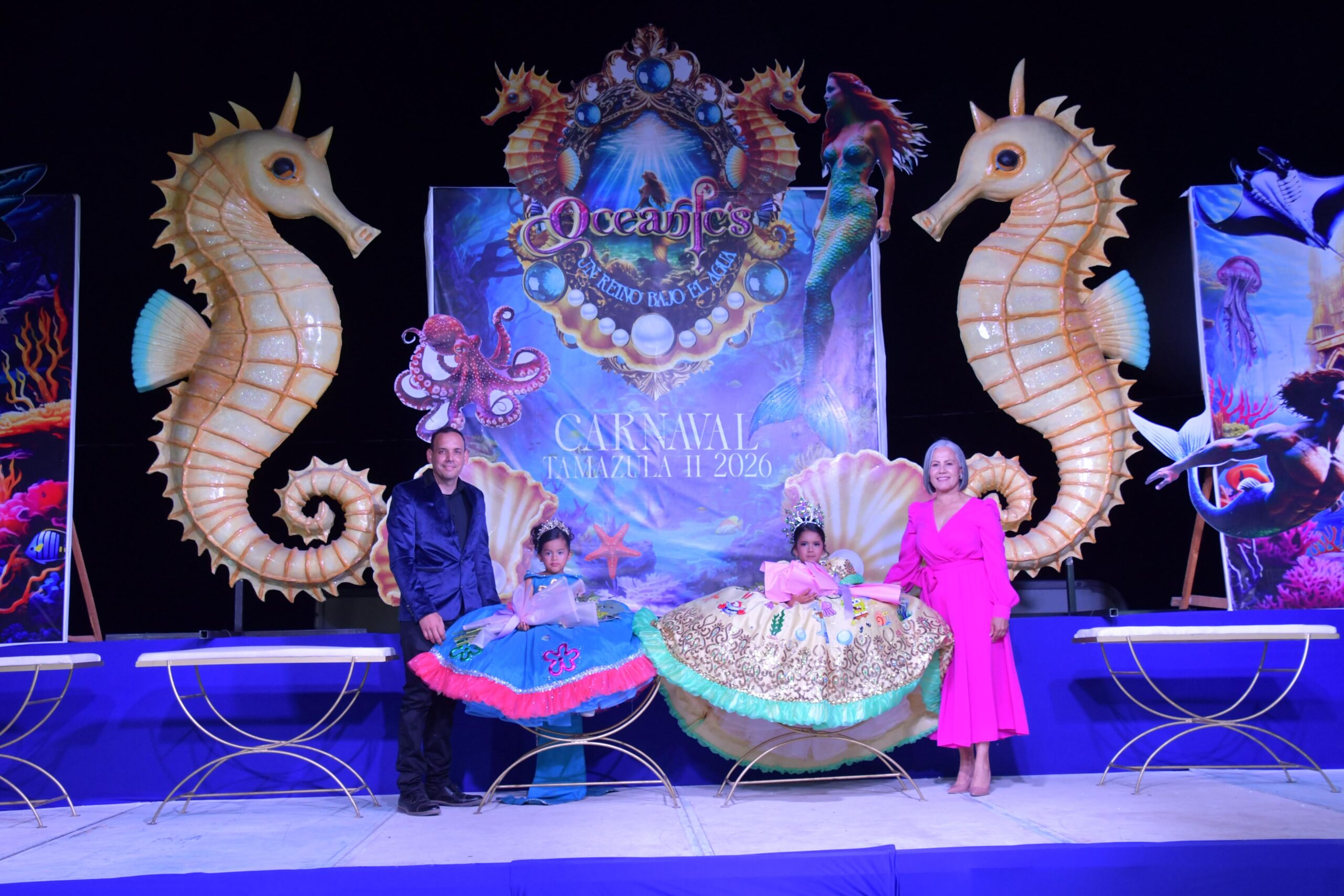 Guamúchil, Sin.– El Carnaval Tamazula 2026 “Oceanics: Un reino bajo el agua” ya cuenta con su cortejo real, tras la ceremonia de coronación encabezada por la presidenta municipal, Lupita López González, quien dio realce, elegancia y belleza a las máximas fiestas de la sindicatura de Villa Benito Juárez.