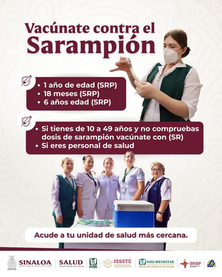 Culiacán, Sin.– La Secretaría de Salud de Sinaloa continúa con la campaña de vacunación contra el Sarampión, Rubéola y Parotiditis (SRP), con el objetivo de proteger