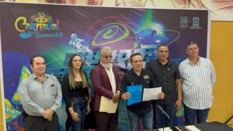 Guamuchil, Sin.- El presidente del patronato del Carnaval Guamúchil 2026 “Mundos Paralelos” en rueda de prensa reveló los detalles de la fiesta que se llevará