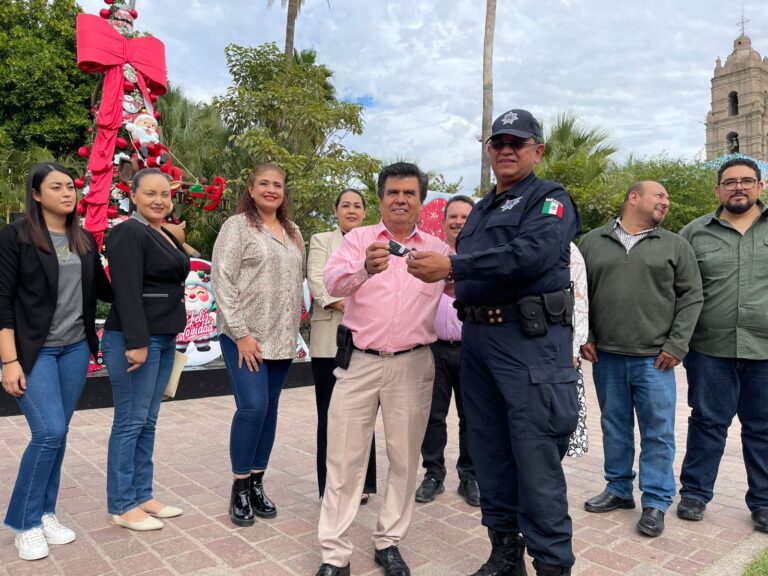 Mocorito, Sin.- Para reforzar las tareas de vigilancia que se realizan en el municipio, el día de hoy el alcalde Enrique Parra Melecio hizo entrega
