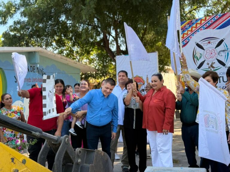 Angostura, Sin.- Este miércoles 12 de noviembre se dio banderazo de inicio a una importante obra de techumbre metálica, andador y juegos en el kinder