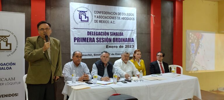 Guamúchil, Sin.- La Confederación de Colegios y Asociaciones de Abogados de México (CONCAAM) realizó la primera sesión ordinaria de la Delegación Sinaloa en Guamúchil, donde