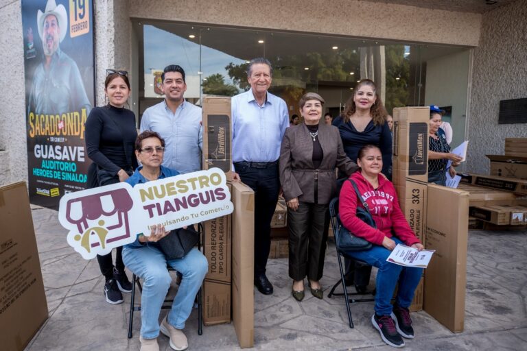 Guasave, Sin.- El programa Nuestro Tianguis, de la Secretaría de Economía, entregó en Guasave 210 equipos (carpas, mesas y sillas), a 70 comerciantes de los tianguis