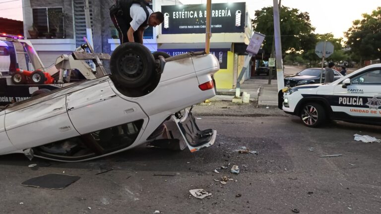 Culiacán, Sin.- Un aparatoso accidente de tránsito se registró la mañana de este domingo 14 de diciembre en el cruce de la avenida Revolución y