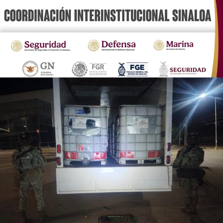 Mazatlán, Sin.– Personal del Ejército Mexicano, en coordinación con la Guardia Nacional, la Secretaría de Marina, la Secretaría de Seguridad y Protección Ciudadana, la Fiscalía General