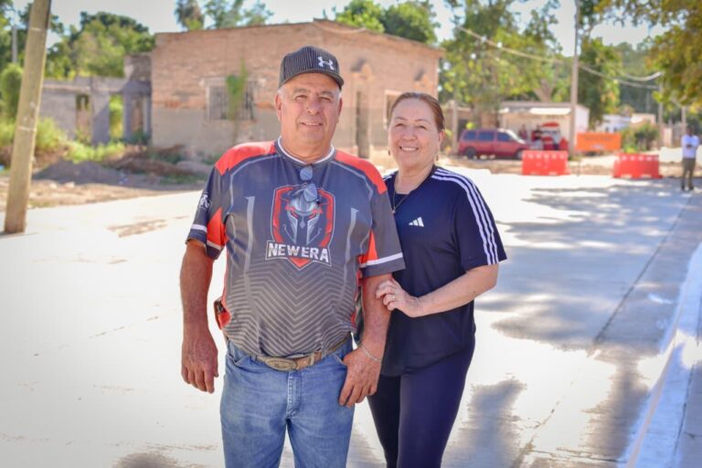 Los Mochis, Sin.- Vecinas y vecinos de la Villa de Ahome manifestaron su satisfacción por la conclusión de la pavimentación con concreto hidráulico en la