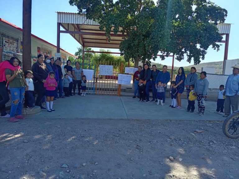 Los Mochis, Sin.- Padres de familia del preescolar Francisco I. Madero en la sindicatura de San Blas, El Fuerte, continúan plantados a las afueras del