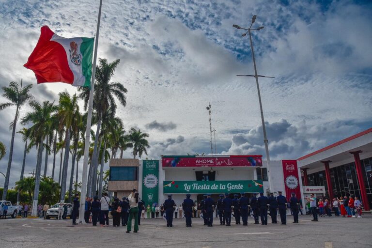 Los Mochis, Sin.- Autoridades civiles, militares, educativas, estudiantes y ciudadanos se dieron cita este viernes a la explanada de Palacio Municipal y al Parque 13
