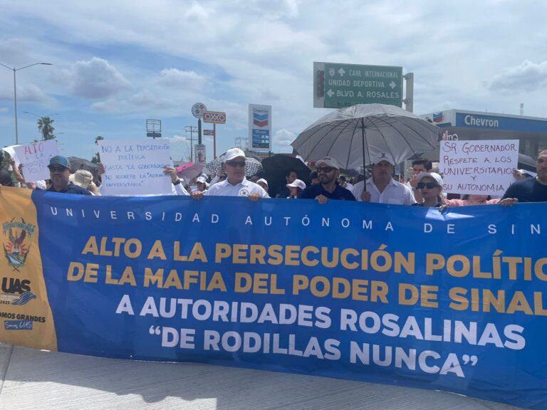 Los Mochis, Sin.– Al grito universitario de “Fuera Rocha…” el gobernador Rubén Rocha Moya responde: “Fuera los corruptos de la universidad… fuera los corruptos de