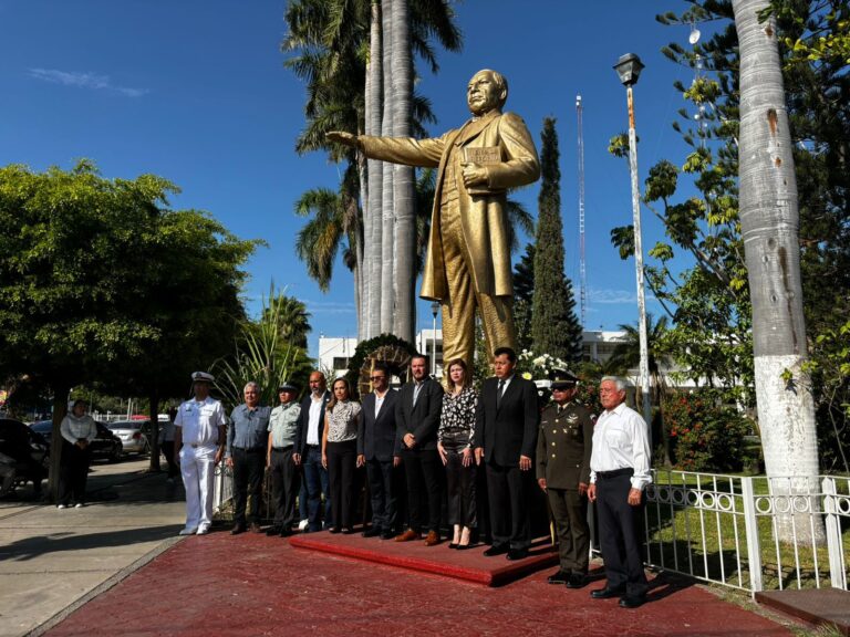 Los Mochis, Sin.- El 152 aniversario luctuoso de Benito Pablo Juárez García fue conmemorado este jueves con acto cívico que contó con izamiento de Bandera,