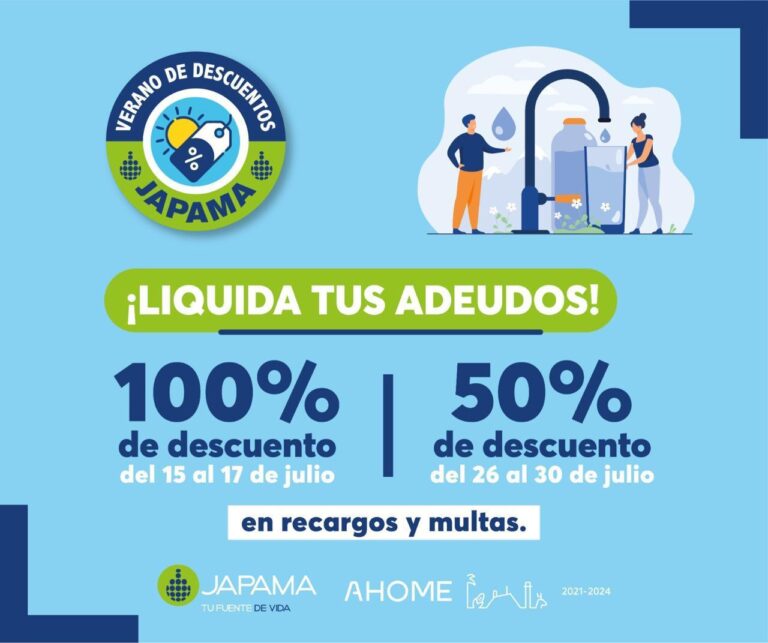 Los Mochis, Sin.- Los descuentos de verano llegaron a la JAPAMA, por lo que a partir de este lunes 15, martes 16 y miércoles 17