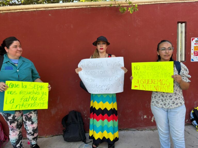 Los Mochis, Sin.- Cansados de soltar de su bolsillo para contratar al personal de intendencia, padres de familia se manifestaron esta tarde a las afueras