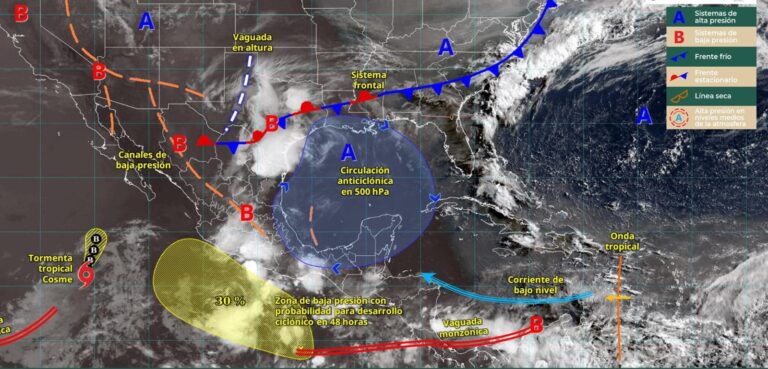 Ciudad de México.- Durante este día, un sistema frontal en combinación con una vaguada en altura e inestabilidad atmosférica, propiciarán chubascos y lluvias fuertes en