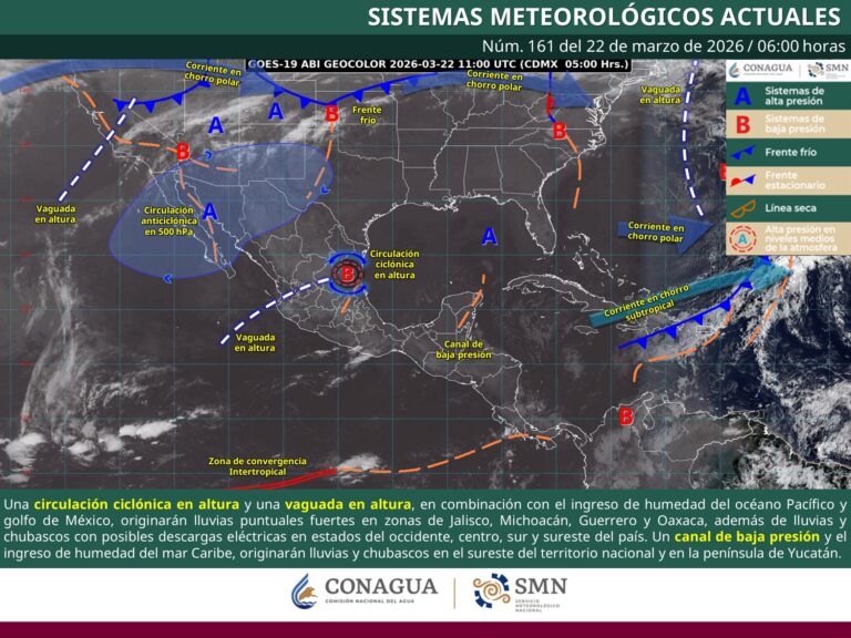 Ciudad de México.- Durante el día cielo despejado a medio nublado, sin lluvia en la región Pacífico Norte. Por la mañana, ambiente fresco, y durante