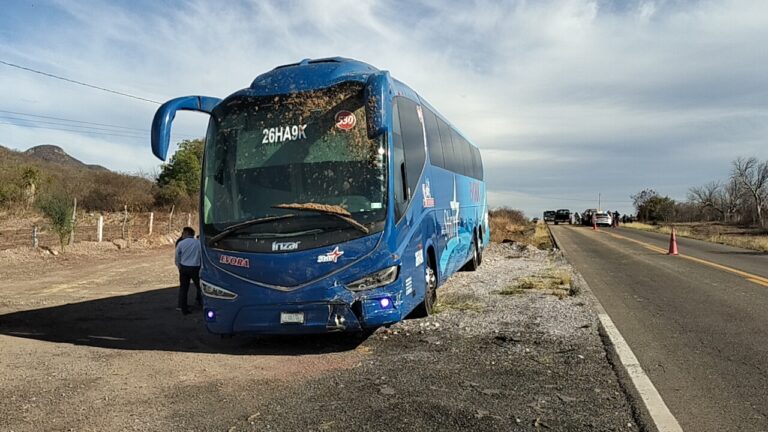 Guamúchil, Sin.- Una persona resultó lesionada al chocar un autobús de pasajeros de la línea autobuses del ébora contra una camioneta de la ganadera de