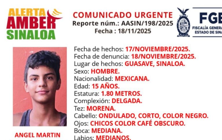 Guasave, Sin.- Un adolescente de 15 años que había sido reportado como desaparecido en Guasave, fue localizado este martes, luego de que la Fiscalía General