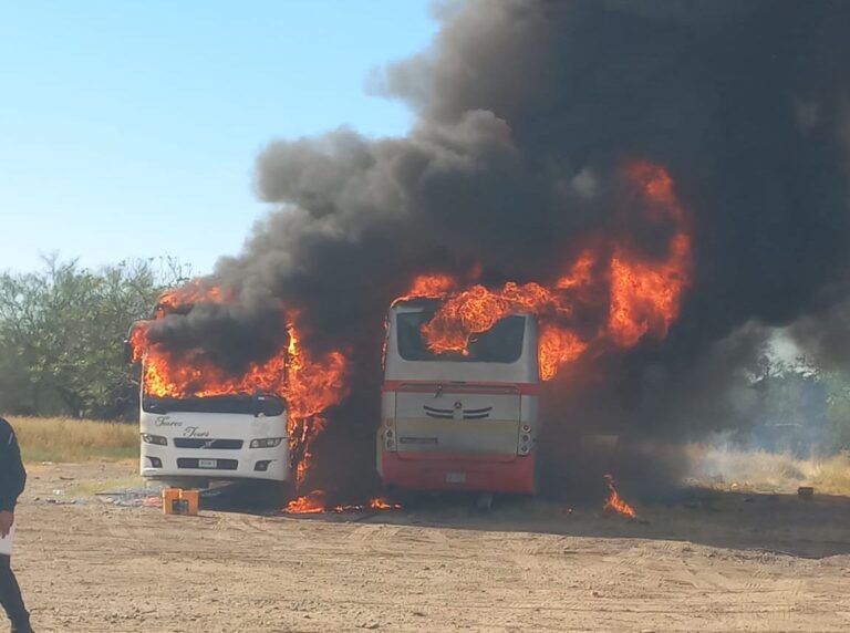 Guasave, Sin.– La mañana de este sábado se registró un incendio que consumió dos autobuses de turismo en el estacionamiento del restaurante La 15, ubicado
