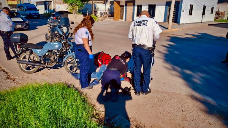 Los Mochis, Sin.– Un motociclista resultó lesionado la tarde de este jueves 25 de septiembre, luego de ser impactado por un vehículo en el cruce