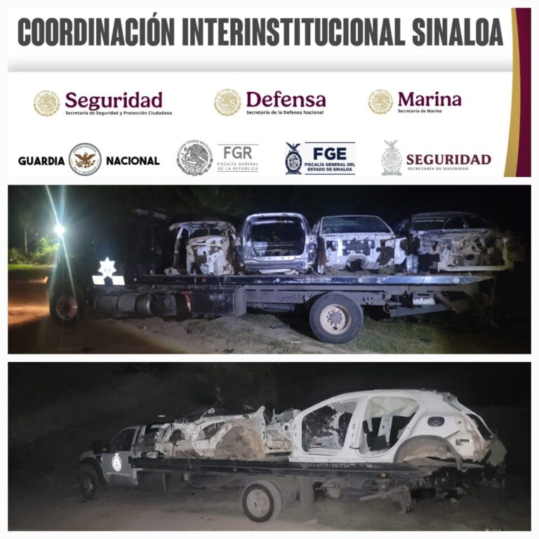 Culiacán, Sin.- El gobernador de Sinaloa, Rubén Rocha Moya, confirmó el hallazgo de 39 vehículos, varios de ellos ya deshuesados, en la comunidad de Navolatillo, ubicada