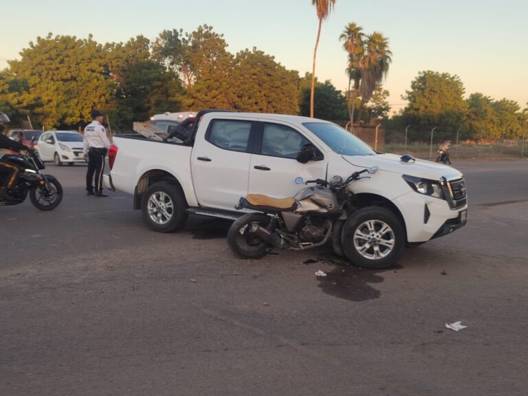 Los Mochis, Sin.– Un joven motociclista identificado como Jesús Germán Valdez, de 27 años de edad, resultó con heridas y fracturas en distintas partes del