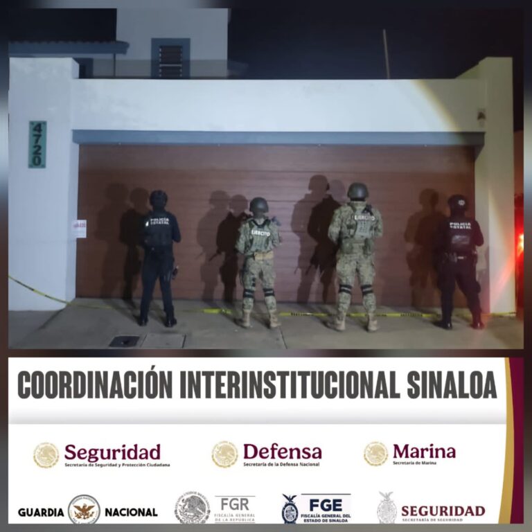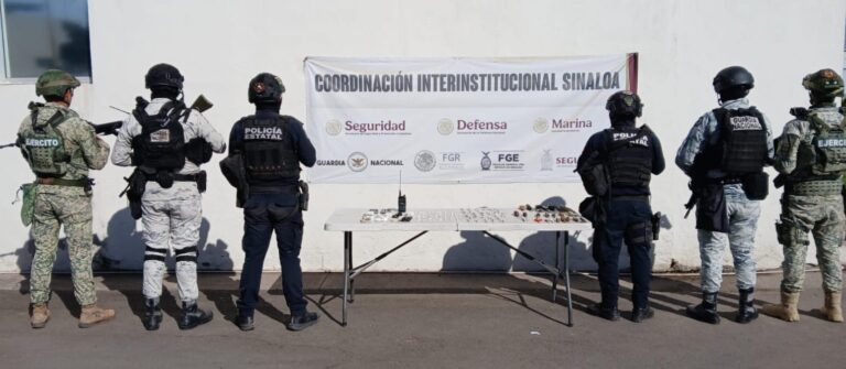 Culiacán, Sin.- Elementos del Ejército Mexicano, en coordinación con la Guardia Nacional, la Secretaría de Marina, la Secretaría de Seguridad y Protección Ciudadana, la Fiscalía General