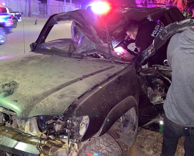 Guasave, Sin.– Un accidente registrado durante la madrugada de este jueves dejó a una joven mujer gravemente lesionada e inconsciente, luego de chocar la camioneta