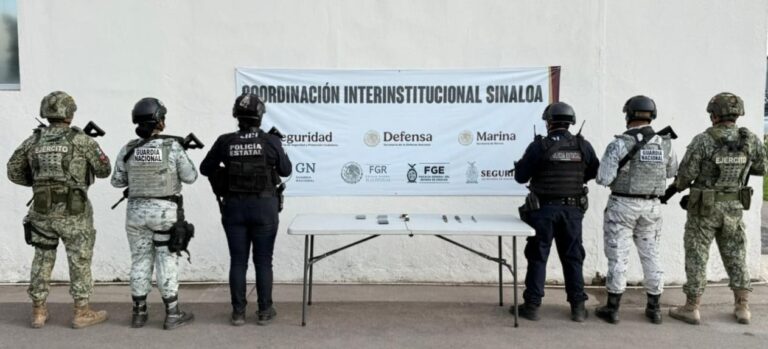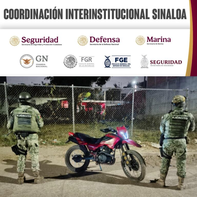 Culiacán, Sin.- Personal del Ejército Mexicano, en coordinación con la Guardia Nacional, la Secretaría de Marina, la Secretaría de Seguridad y Protección Ciudadana, la Fiscalía General