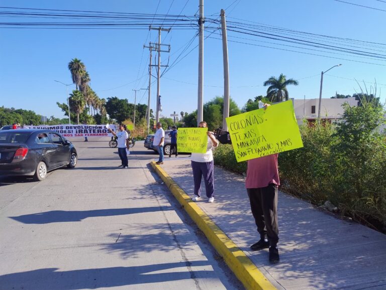 Los Mochis, Sin.- Vecinos del fraccionamiento San Fernando se manifestaron nuevamente bloqueando el bulevar Antonio Rosales, entre Mariano Escobedo y Pedro Anaya, para exigir la